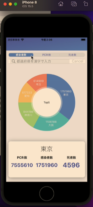 以下の図のように「県別状況ボタン」を押して新しい画面に遷移した。